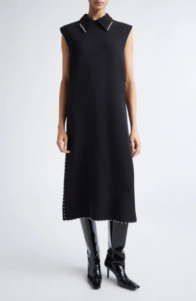 Metallic-bead trim reminiscent of bearing balls lends an industrial edge to the polished minimalism of this collared midi dress tailored from a virgin-wool blend in a shift silhouette. Hidden back-zip closure Spread collar Sleeveless Side slit 98% virgin wool, 1% elastane, 1% polyamide Dry clean Made in Italy Designer Clothing