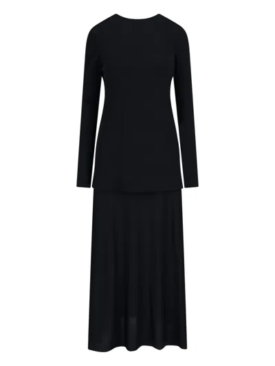 A long-sleeve black maxi dress from Jil Sander embodies sophistication. The elegant round neckline complements the flowing skirt, which gracefully extends to the ankles for a flattering silhouette. A subtle keyhole detail at the back adds charm, making it a timeless wardrobe addition.- Long-sleeve design- Black color- Round neckline- Flowing skirt- Ankle-length- Keyhole detail at the back