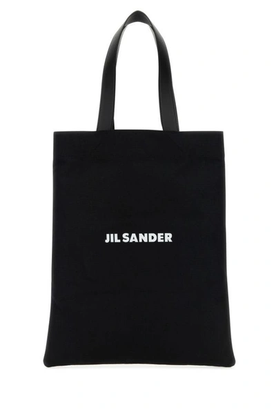 JIL SANDER Black Linen And Cotton Canvas Medium Tote Bag