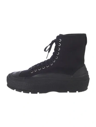 Jil Sander Canvas Ankle Boots Black & Blue Round-Toes Lace-Up Closure at Uppers Includes Dust Bag | Jil Sander Canvas Boots in Black/Blue, Men's EU 44 | 11