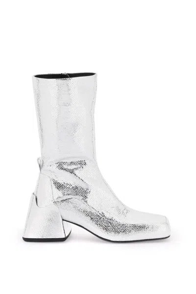 JIL SANDER Cracked-effect Laminated Leather Boots In Silver