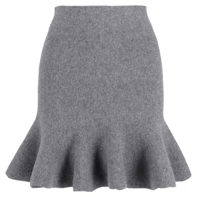 Knitted Mini High-waisted Trumpet Skirt In Grey Wool