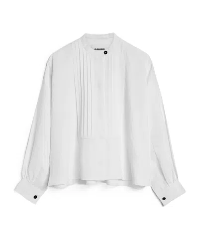JIL SANDER Long-sleeved Linen Shirt With Front Pleated Plastron In White