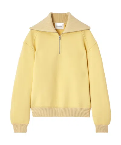 Jil Sander's sweater comes in a soft yellow shade that will uplift any outfit. Made from a cozy wool-blend, it has an oversized shape defined by ribbed trims and a half-zip placket that allows you to adjust the funnel neckline.