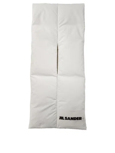 Jil Sander's padded scarf is the ideal accessory for the modern man who wants to combine style and function. Made from high-quality materials, this scarf offers superior comfort and sophisticated design. Perfect for completing winter looks with a touch of elegance, it is ideal for those who want to stand out in any occasion. || - Dimensions: 25x116 cm - Jil Sander+ logo label sewn on the bottom - Padding for added thermal comfort || We recommend pairing this padded scarf with a long wool coat and a pair of leather boots for a chic and refined look. For more casual events, it can be worn over a cashmere sweater and dark jeans.. Colour. : White. Composition. : 100% polyester - 85% goose down 15% goose feather. Country Of Manufacture. : Italy. Dimension. : 25x116 cm. Extra Description. : 25x116 cm. MPN. : J47TE0001J70008100. .