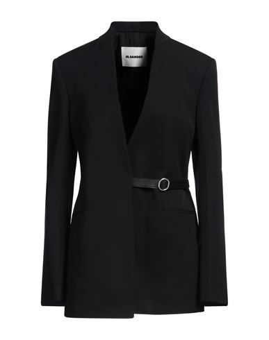 single-breasted blazer, twill, belt, solid color, deep neckline, long sleeves, fully lined, multipockets, contains non-textile parts of animal origin, dry clean, do not bleach, do not tumble dry, this brand runs large , Color: Black , Size: 2