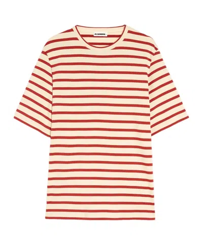JIL SANDER Striped-pattern Logo-patch T-shirt In Neutral