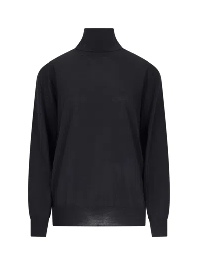 Jil Sander high neck sweater in black merino wool with central split at the back, ribbed trim, straight hem. Composition: 100% Merino Wool
