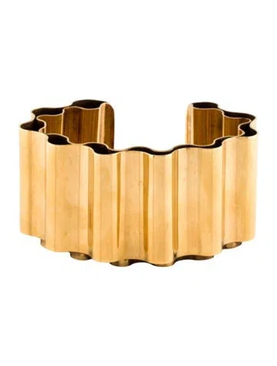 Gold-Tone Metal Designer Size MIncludes Jewelry Pouch | Jil Sander Wave Cuff Bangle, Women's M