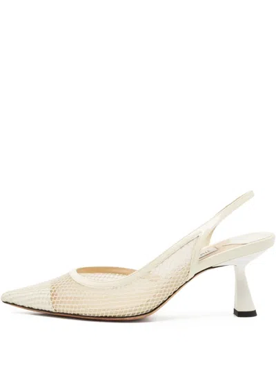 Pre-owned 65mm Amita Mesh Pointed-toe Slingback Pumps In White