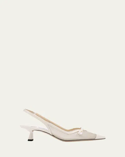 JIMMY CHOO Amita Mesh Pearly-strap Slingback Pumps In Lattechamp