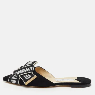 JIMMY CHOO Black Suede Logo Web Gretchen Flat Mules