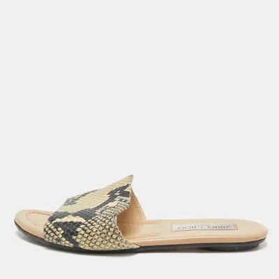 Pre-owned Black/cream Python Embossed Leather Nanda Flat Slide Sandals Size 36.5