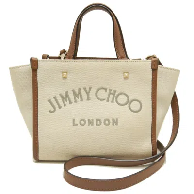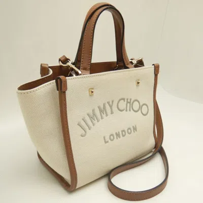 Brand: Jimmy Choo, Color: Brown, Ivory, Material: Cotton canvas, Leather, Dimensions: 16cm x 20cm x 11cm / 6.29'' x 7.87'' x 4.33'', Condition: Rank AB. Rank AB Used - Traces of usage, scratches / dirt can be seen but generally in good condition. Before purchasing, please refer to the images for the exact condition of the item. Before purchasing, please refer to the images of the accessories included with the item. Damage Ranking: -Item #: JIMMY198B1