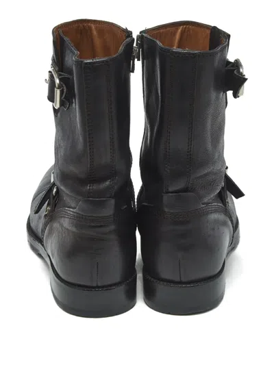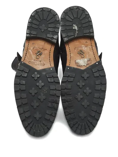 black leather side zip closure buckle detailing block heel ridged sole round toe Condition: GOOD. This previously owned and used item is in good condition with minimal signs of use. This may include fading of material or plating and scratches. This piece comes complete with a protective dust bag.