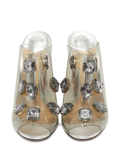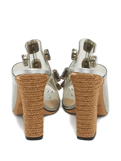 white crystal embellishment open toe rope heel block heel slip-on style Condition: GOOD. This previously owned and used item is in good condition with minimal signs of use. This may include fading of material or plating and scratches.
