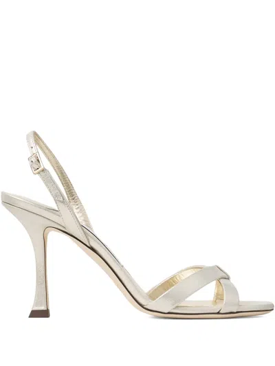 JIMMY CHOO Elsy 90 Shimmer Suede Sandal In Gold