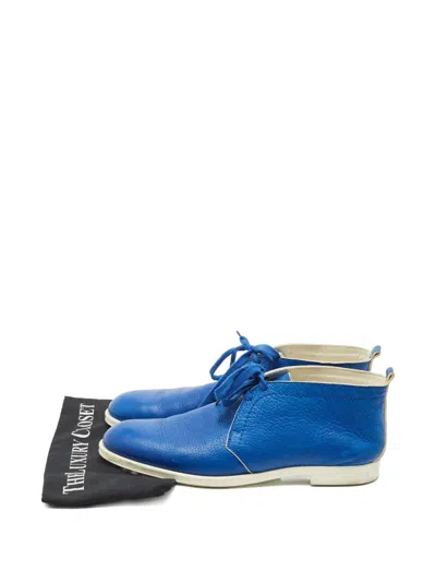 blue leather upper lace-up closure white sole round toe textured leather Condition: GOOD. This previously owned and used item is in good condition with minimal signs of use. This may include fading of material or plating and scratches.