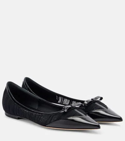 JIMMY CHOO Love Leather-trimmed Mesh Ballet Flats In Black