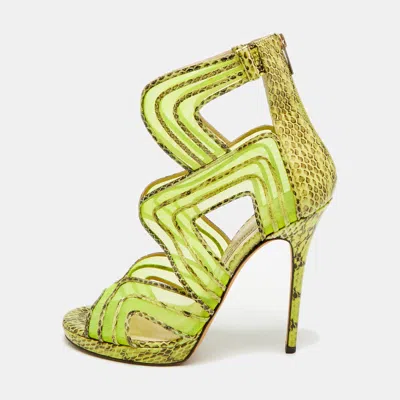 Pre-owned Magnum Size 40 Tricolor Net And Python Leather Cut-out Platform Pumps In Green