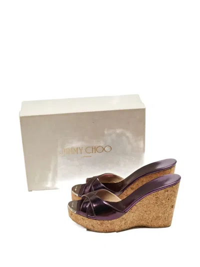 purple leather cork wedge metallic sheen criss-cross strap platform Condition: EXCELLENT. This previously owned item is in near-perfect condition with no signs of damage or use. This piece comes complete with a protective dust bag. Your purchase will arrive to you in its original packaging.