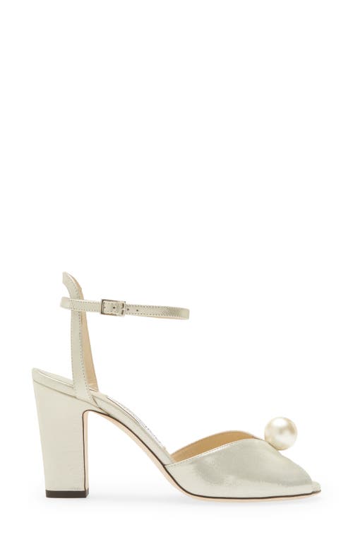 JIMMY CHOO Sacaria Imitation Pearl Embellished Ankle Strap Sandal In Silver