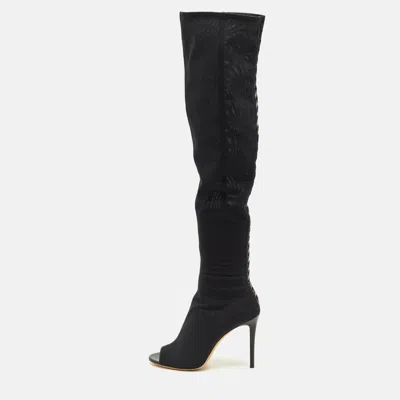 Pre-owned Size 39 Black Leather And Mesh Open Toe Over The Knee Boots