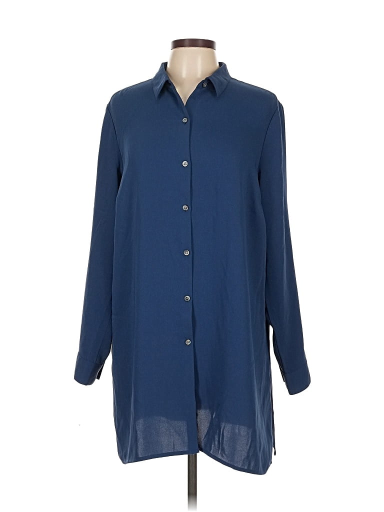 J.Jill 3/4 Sleeve Blouse, Size: Large. Item Details: Blue, Collared Neckline, Long Sleeves, Women's Tops