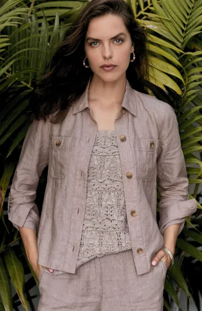 Designed in 100% linen, this classic jacket is a quick way to add polish to your favorite summer looks. We especially love it paired with our Linen Creased-Front Wide-Leg Pants for a softer take on suiting. Box pleat at back yoke. Chest patch pockets. On-seam pockets at sides. Roll-and-tab sleeves. Unlined.100% linen woven. Machine wash cold with like colors, gentle cycle, only nonchlorine bleach if needed, tumble dry low, warm iron if needed. Mid-hip length: R Medium 22½" center back, R 2X 25" center back, P Medium 21" center back, T Medium 24" center back. Long sleeves. Imported. . .