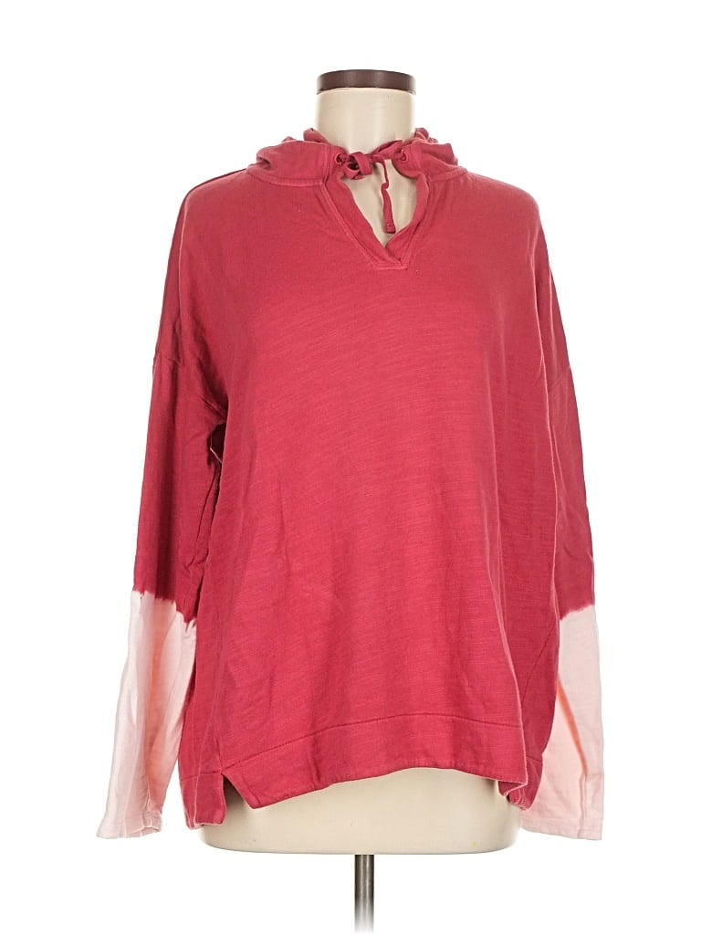 J.Jill Pullover Hoodie, Size: Medium. Item Details: Red, Collared Neckline, 3/4 Sleeve, Velvet, Women's Tops, 100% Cotton