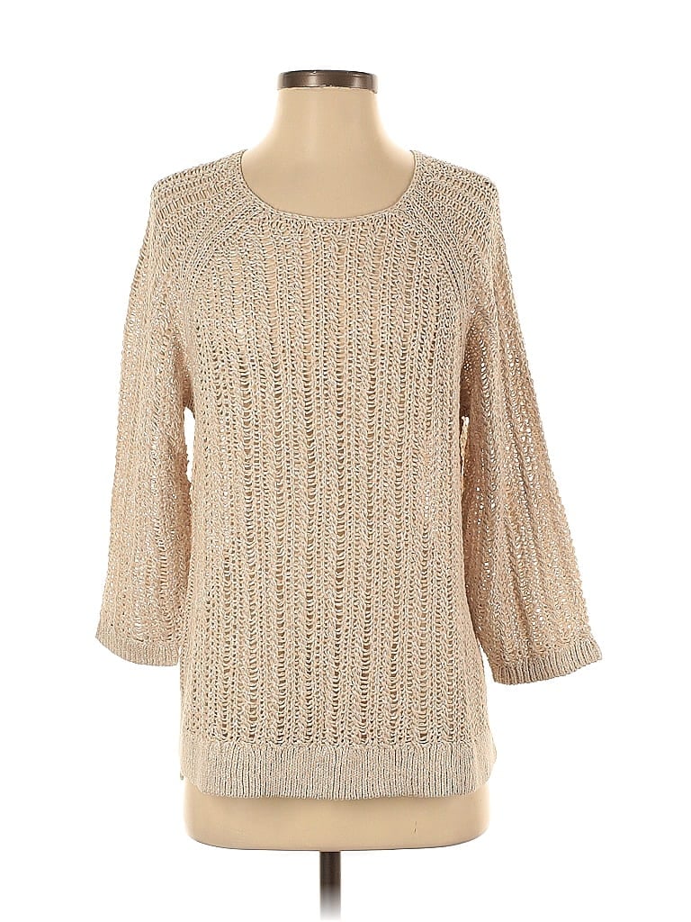 J.Jill Pullover Sweater, Size: Small. Item Details: Tan, Metallic Pattern, Boatneck, 3/4 Sleeve, Beaded, Women's Tops, Cotton/Polyester