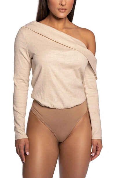 Akemi One-shoulder Long Sleeve Bodysuit In Natural