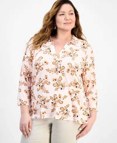 JM COLLECTION Plus Size Printed 3/4-sleeve Tunic, Exclusively At Macy's In Pink
