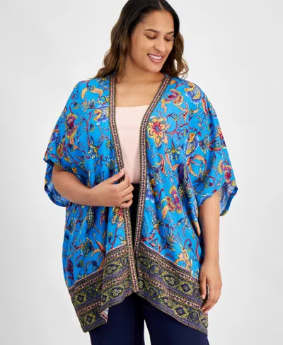 JM COLLECTION Plus Size Printed Open-front Kimono Top, Created For Macy's In Indgo Bunt