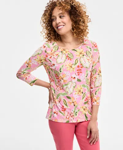 JM COLLECTION Women's Printed 3/4-sleeve Top, Exclusively At Macy's In Multi