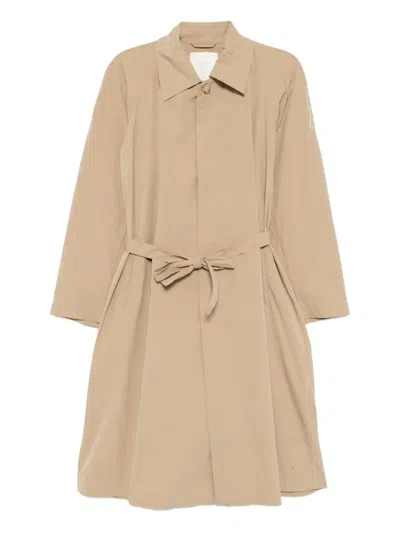 beige concealed front button fastening belted cuffs detachable adjustable waist strap
