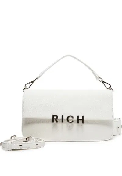 _Brand: John RichmondColor: WhiteManufacturer color:White/SilverDecorative details:Metal silver colorClosure of the compartment:In turn, With magnetic clipQuantity of compartments:1Size of handbag:BabyDimensions: 27x16x6 Height handles: 10 cmAdjustable strap length: YesMaximum strap length: 108/111 Quantity of zipper pockets: 1Material: LeatheretteRigidity: Duration