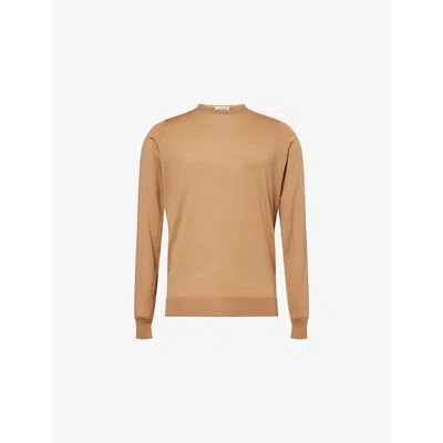 JOHN SMEDLEY Mens Crewneck Knitted Merino-wool Jumper Nutmeg Xxl In Brown