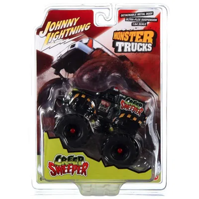 NEW 1/64 scale diecast car model of "Creep Sweeper" Monster Truck "Zombie Response Unit" with Black Wheels and Driver Figure "Monster Trucks" Series die cast model car by Johnny Lightning. Features Real rubber tires True-to-scale detail Ultra-flex suspension Detachable metal body Detailed interior, exterior Comes in a blister pack Officially licensed product Made of diecast metal with some plastic parts Specifications Scale: 1 by 64 Dimension: 3.5" x 3.25" x 2.5" Weight: 2 lbs