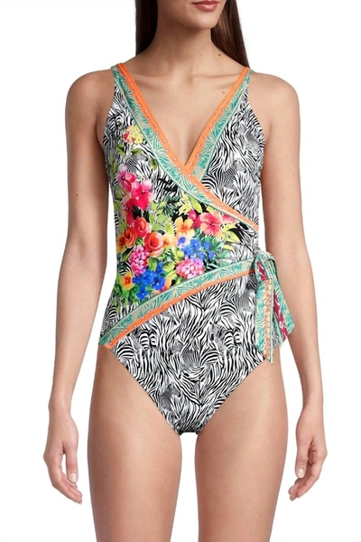 JOHNNY WAS Zebra Print Wrap Style Swimsuit In Multi