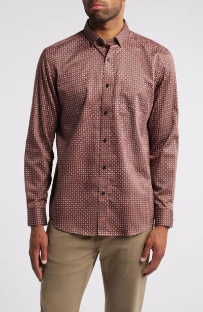 JOHNSTON & MURPHY Linked Ovals Print Button-up Shirt In Rust/ Navy