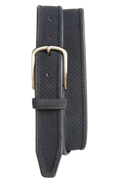 JOHNSTON & MURPHY Perforated Suede Belt In Navy