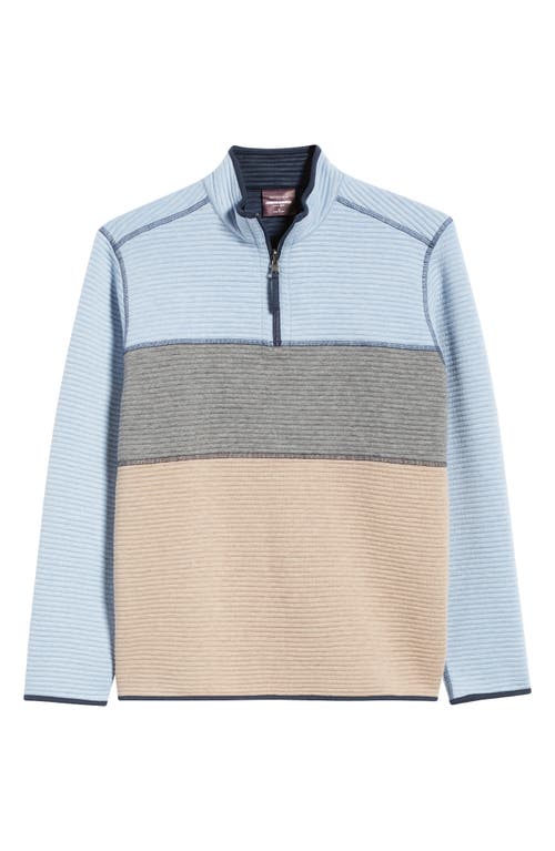 Colorblock panels and solid navy double the wearing options of a reversible pullover made with a touch of breathable cotton and ringed in ribs of crisp channel quilting. The short front zipper lets you adjust the fit, and the taller collar extends your coverage when the temperatures drop. Quarter-zip closure Stand collar Long sleeves 84% polyester, 16% cotton Machine wash, dry flat Made in Peru