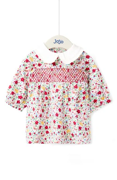 Your little one will be ready for holiday photos and parties in this sweet cotton dress featuring a Peter Pan collar, smocking at the chest and a festive floral print. Back button closure 100% cotton Machine wash, tumble dry Imported