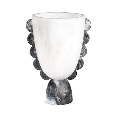 C'est Graphique! Featuring our mesmerizing twist on classic black and white, our oversized scalloped urn is the attention-getting anchor that every modern tablescape needs. Our Mustique vessels pair dimensional tones with bold Memphis-y geometrics. Each piece is hand-poured to create a unique marbleized finish, then polished to luminous perfection. Style them together to create a monumental moment. Hand-poured with a unique marbleized finish Polished to luminous perfection Care instructions: Avoid scratches, clean with a soft, dry microfiber cloth, use warm soapy water for deep cleaning Minor scratches can be buffed out by hand Novus cleaners can be used for scratches 10.25" W, 8.25" D, 15" H