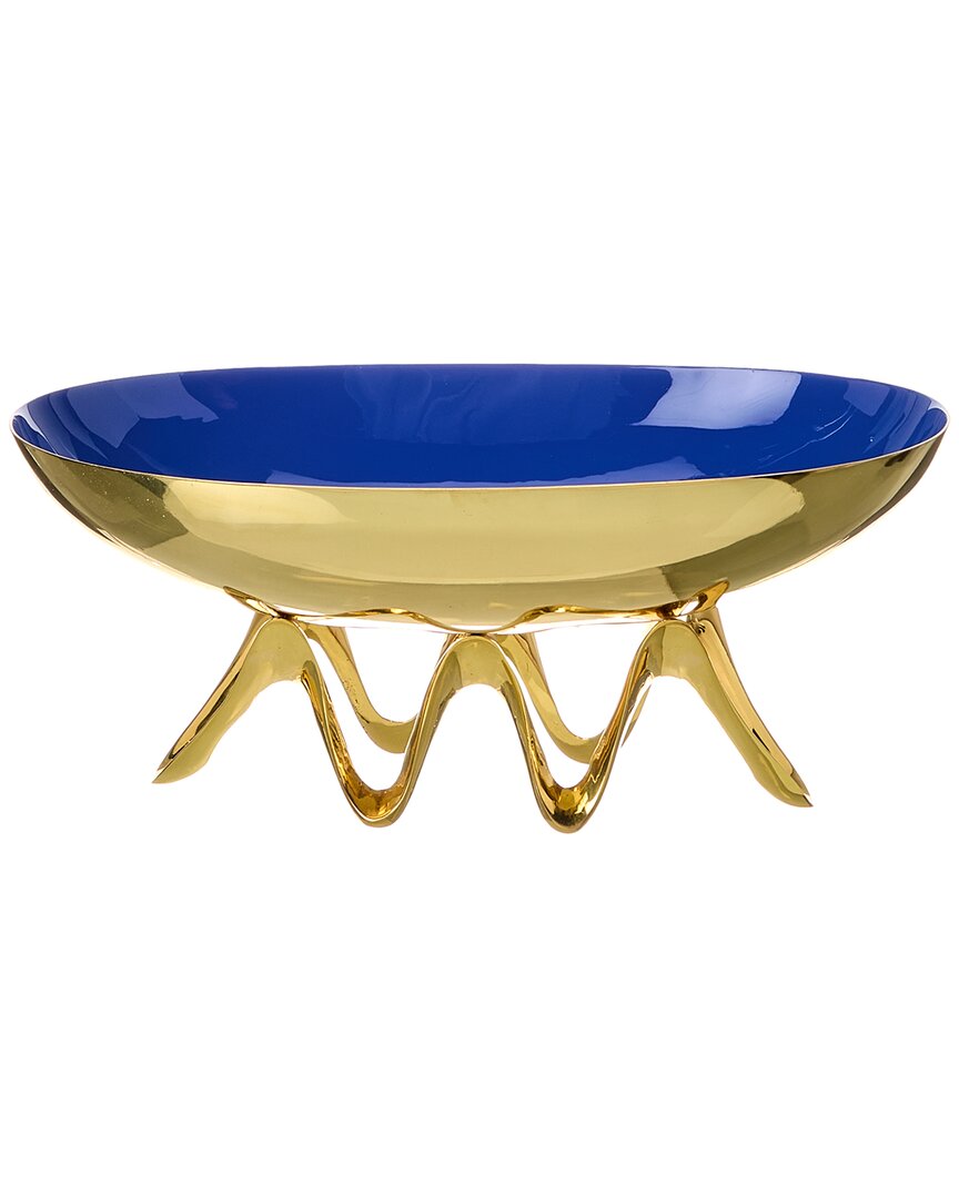 Architectural Gems. Rendered in solid brass with rich colored enameled interiors, our Oscar Bowls are inspired by midcentury architecture, but also add a pop of jewel-like color to your tablescape. Hand wash only using warm, soapy water and a soft, lint-free cloth Fingerprints and minor scratches can be buffed out using a soft microfiber cloth Over time, polished brass will develop a natural rich patina; if you have no patience for patina, use a brass polish Never use harsh chemical or abrasive cleaners that could erode protective topcoats Not microwave safe 14" W, 8.5" D, 6" H