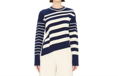 Dale Crewneck Pullover Top In Midnight Stripe In Multi
