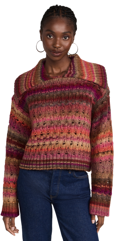 SIMKHAI Jenna Lofty Space Dye Cropped Pullover In Punch Multi