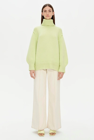PRE-SPRING 2024 READY-TO-WEAR. The Leylani Pullover in Luminary. Luxuriously soft with a cozy fit, this sweater boasts a prominent turtleneck. Its vibrant hue and classic knit texture converge, creating a warm piece of radiant elegance.
