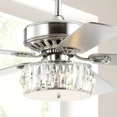 JONATHAN Y Mandy 52" 3-light Crystal Prism Drum Led Ceiling Fan With Remote In Metallic